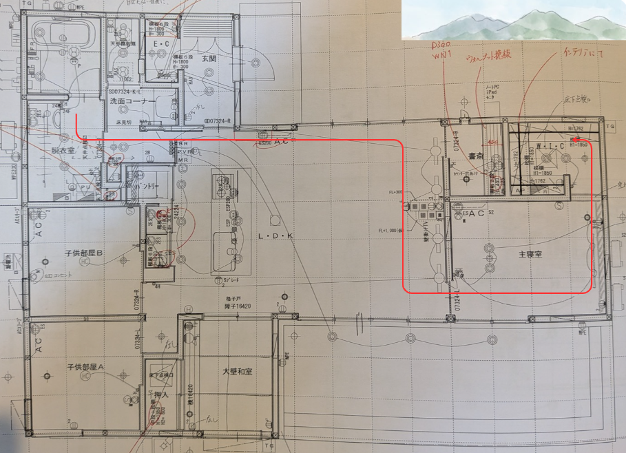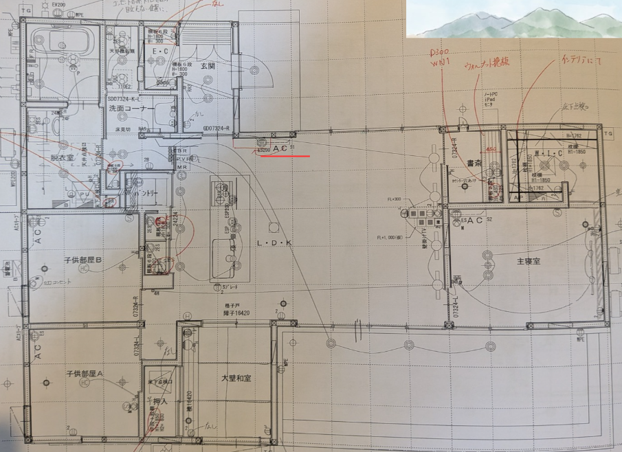 設計当時のリアルな書き込みが入ったままですが、この「生々しさ」こそ家づくりの醍醐味ということで(笑)。